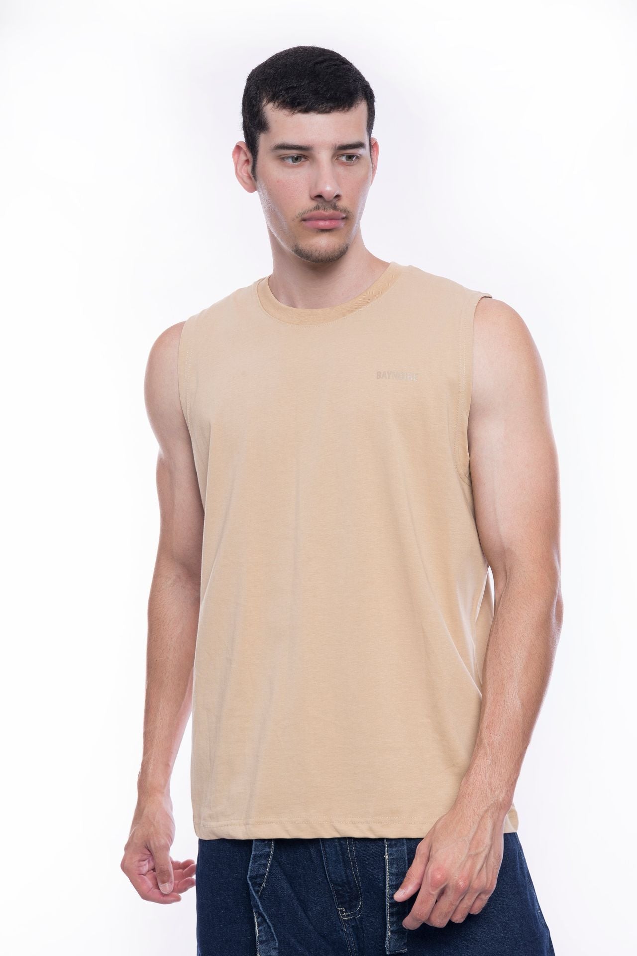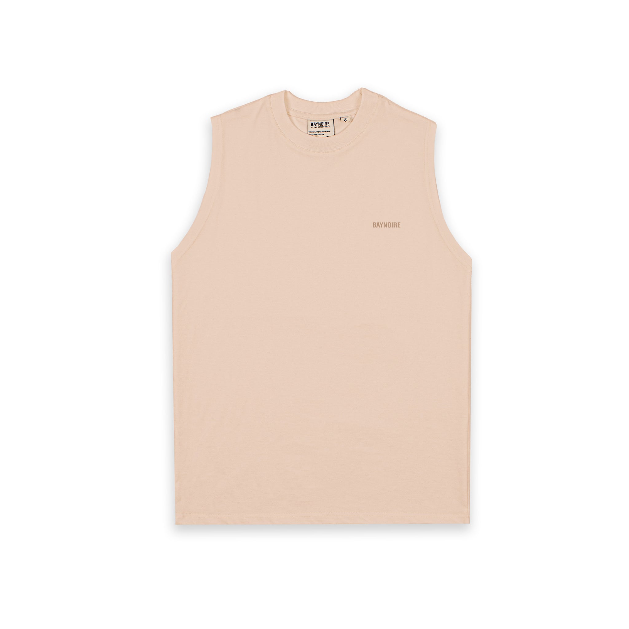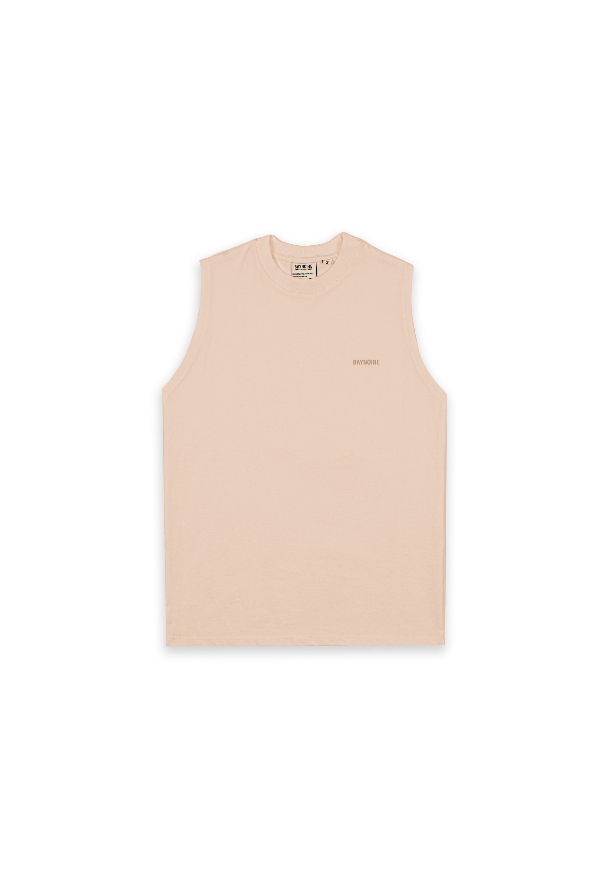Pure cotton sleeveless T-shirt in Beige, a soft neutral tone that exudes understated elegance.