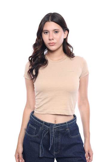 Pure cotton baby tee in Beige, a soft neutral tone that blends simplicity with subtle charm.