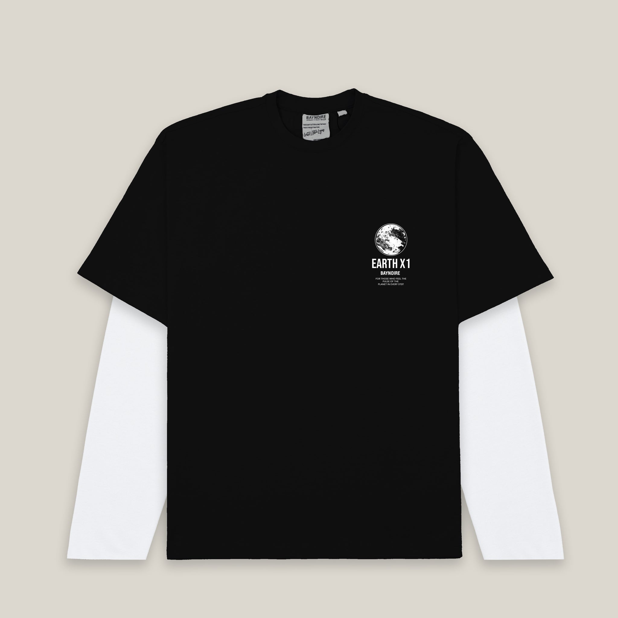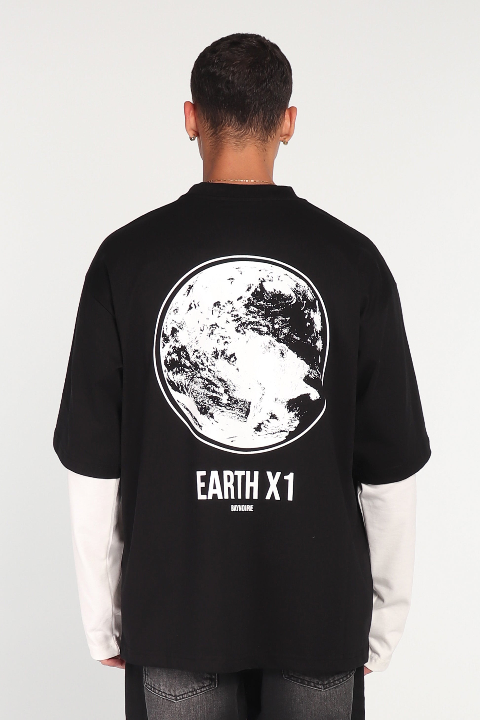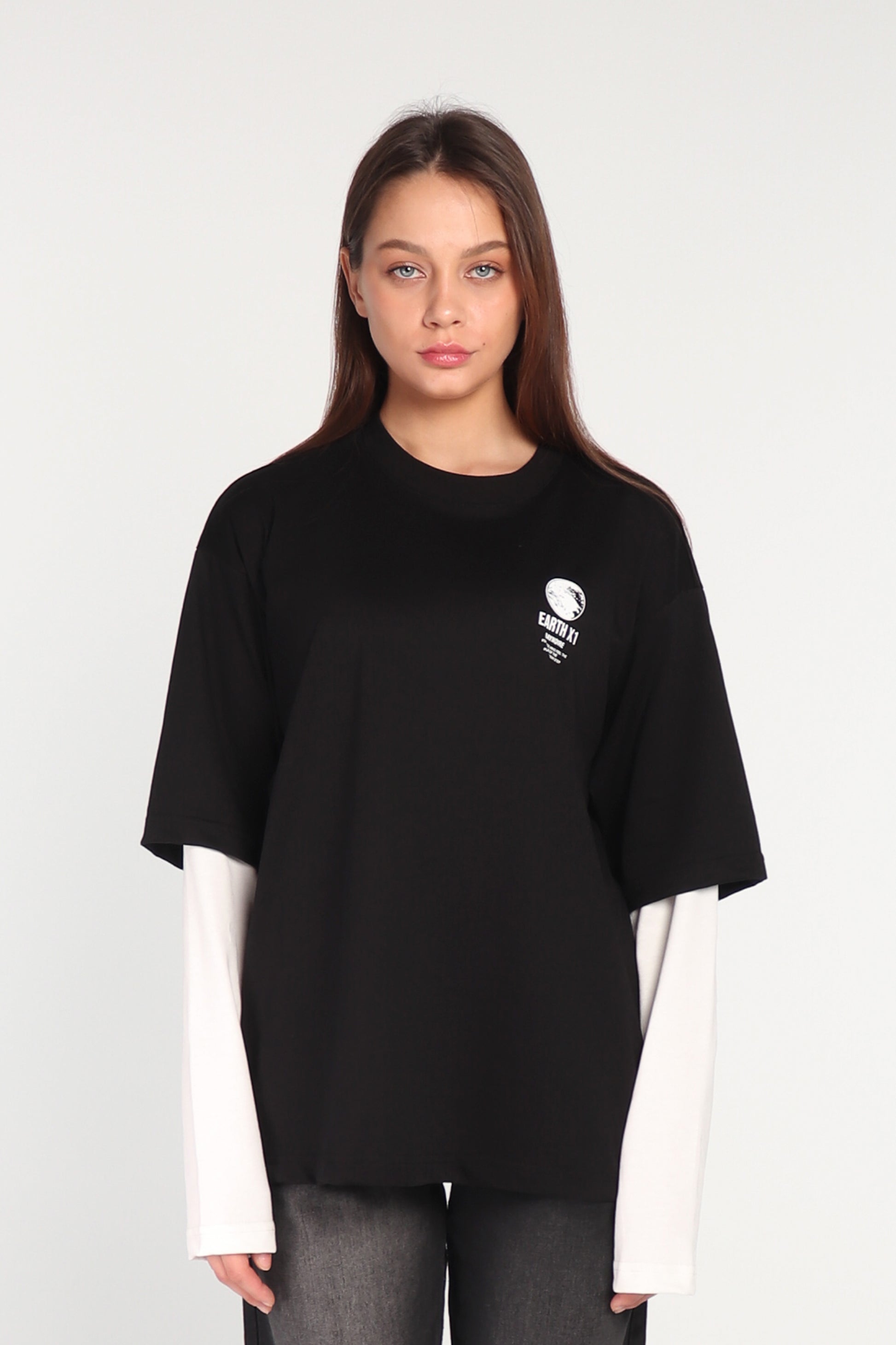 Step into effortless style with the Black Double Sleeve T-shirt. Crafted from soft, premium cotton fabric with a relaxed oversized fit, it keeps you comfortable all day long. The striking Earth print on the back adds a bold, playful edge. Slip into Black and feel confidence, energy, and a standout vibe — your statement piece for expressing individuality.