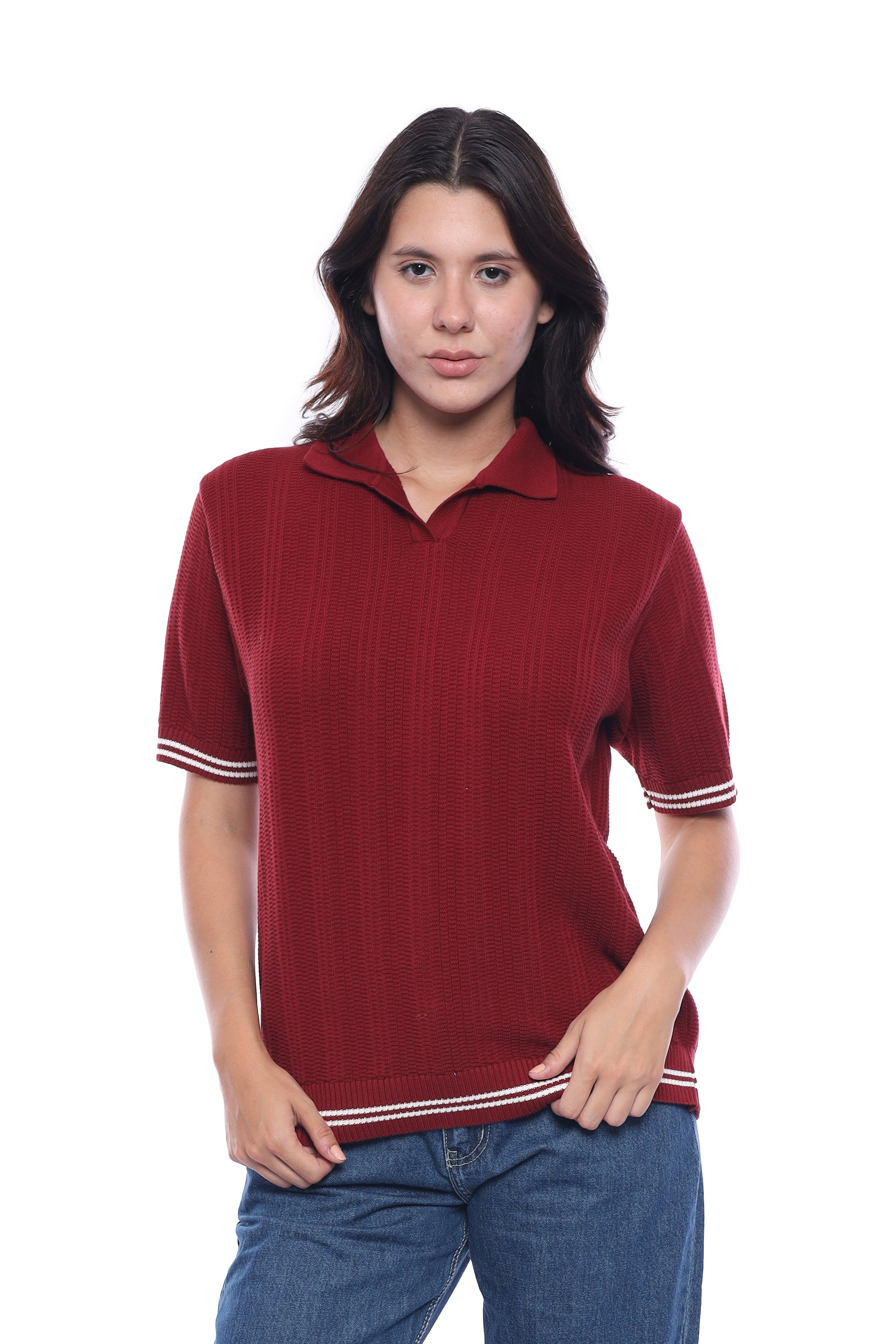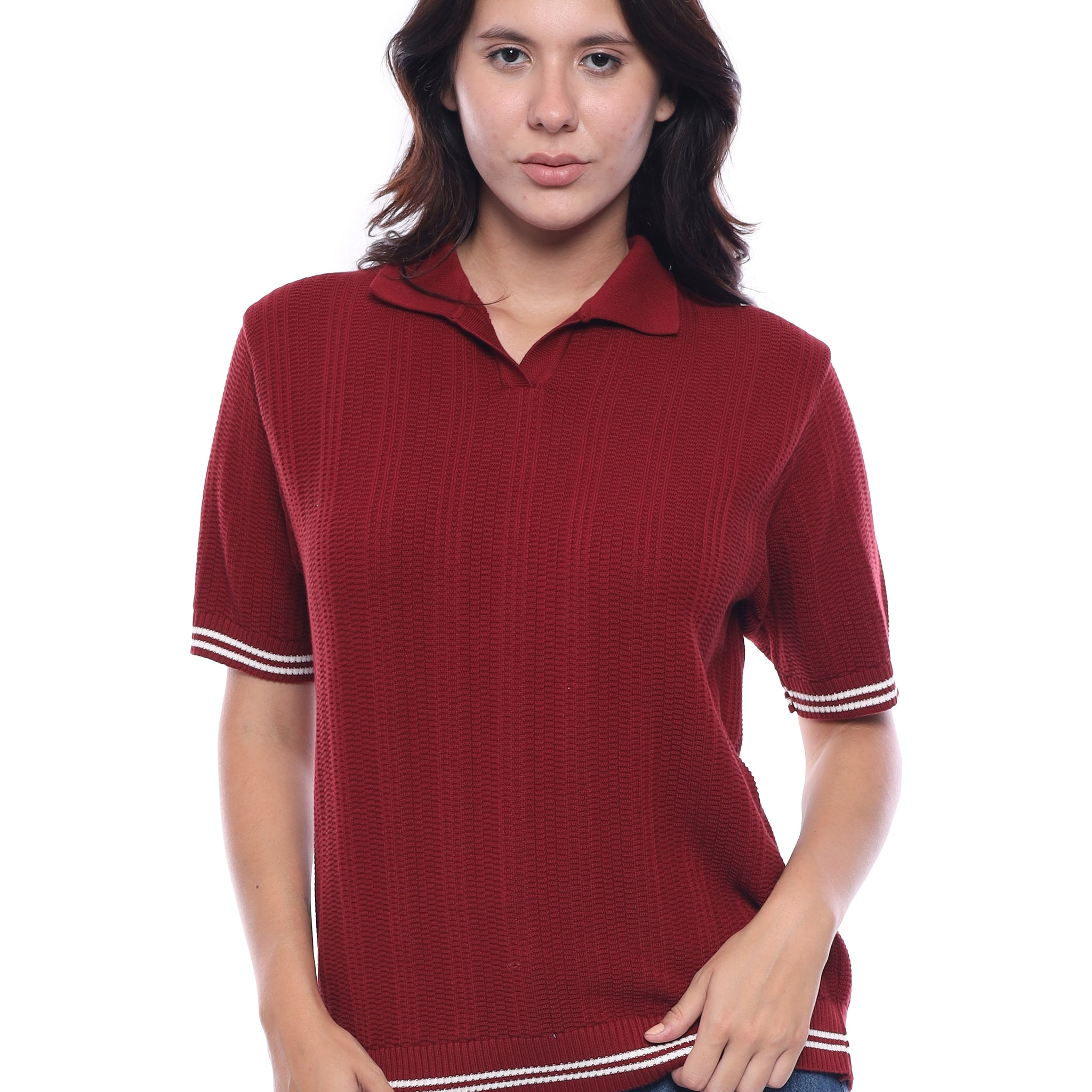 Caprice Line, Burgundy Knitted Polo Shirt
